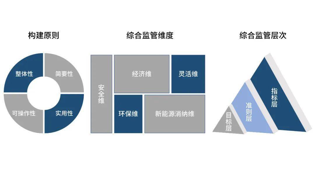综合监管指标体系五个综合监管维度包括:安全维监管维度、经济维监管维度、环保维监管维度、灵活维监管维度,新能源消纳维监管维度。三个综合监管层次包括:目标层监管层次、准则层监管层次和指标层监管层次(见图4、表1)。