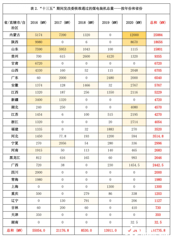 2020年新通过审批煤电总量同比增长231.6%,不利于建设低碳新型电力系统