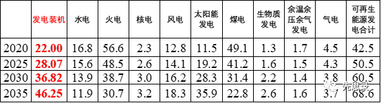 表3.2025、2030和2035年我国各类电源装机结构预测(亿千瓦、%)