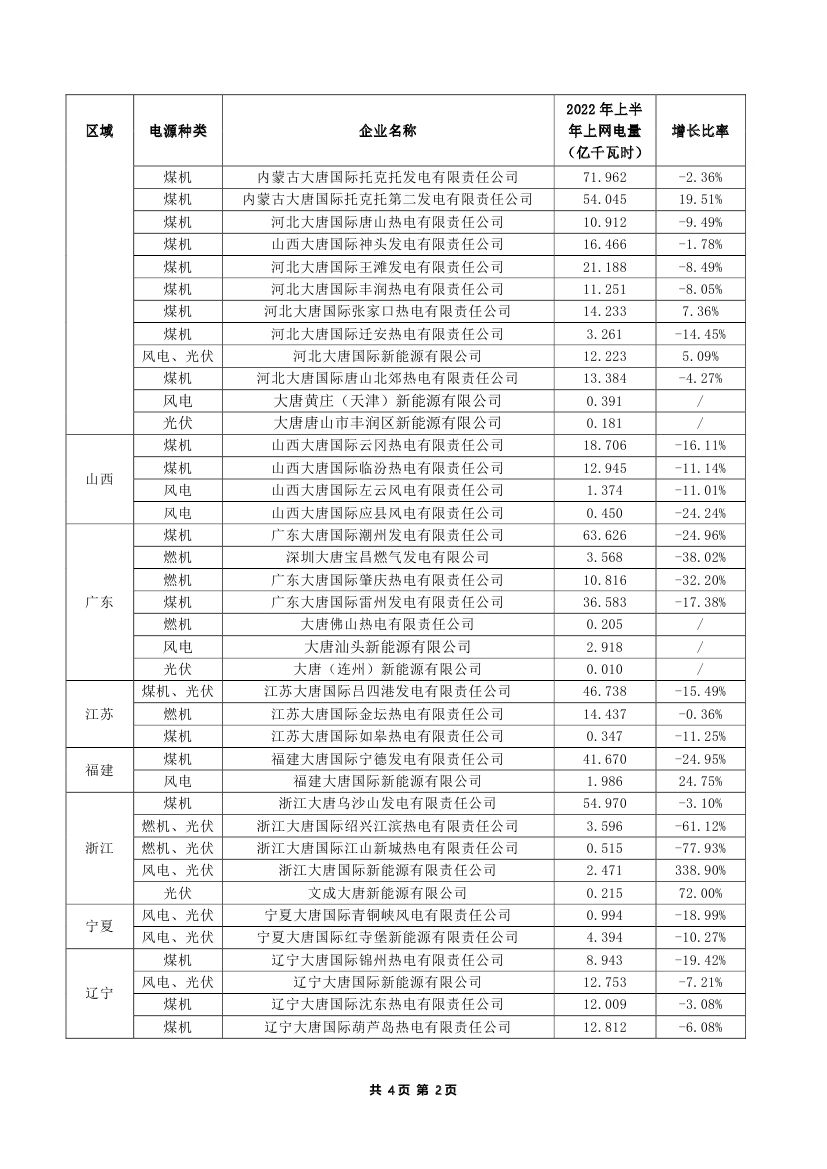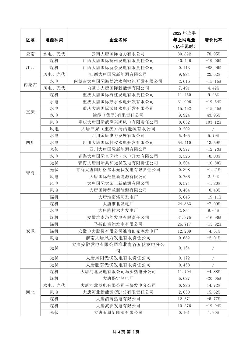 大唐发电近日发布2022年半年度上网电量完成情况公告,截至2022年6月30日,本公司及子公司累计完成上网电量约1,148.192亿千瓦时,同比下降约8.18%。