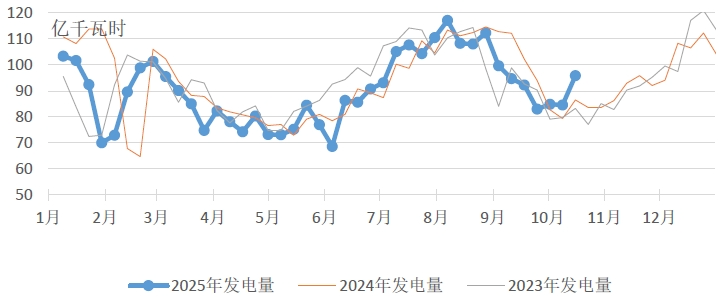 根据中电联电力行业燃料统计,截至10月16日,纳入统计的发电集团燃煤电厂本月累计发电量同比增长9.9%,本年累计发电量同比下降3.7%。燃煤电厂耗煤量本月累计同比增长6.9%,本年累计同比下降4.5%。燃煤电厂煤炭库存低于去年同期441万吨,库存可用天数低于上年同期0.8天。