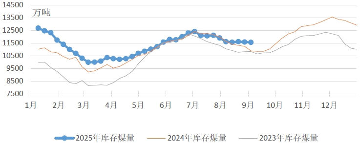 根据中电联电力行业燃料统计,截至9月4日,纳入统计的发电集团燃煤电厂本月累计发电量同比下降13.4%,本年累计发电量同比下降3.7%。燃煤电厂耗煤量本月累计同比下降12.8%,本年累计同比下降4.4%。燃煤电厂煤炭库存高于去年同期666万吨,库存可用天数高于上年同期2.2天。