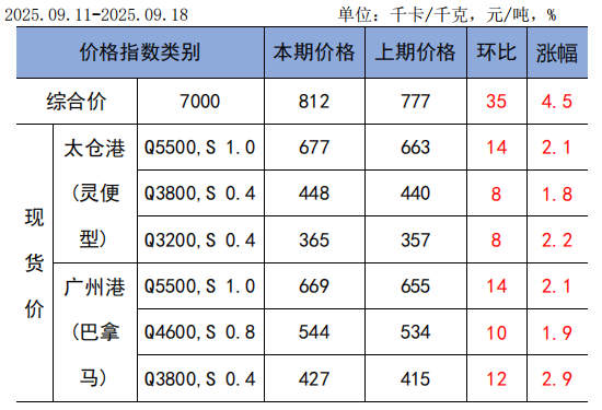 CECI进口指数812元/吨,较上期上涨35元/吨,环比涨幅4.5%。本期各煤种现货采购价格均有不同程度上涨,其中太仓港(灵便型)和广州港(巴拿马型)5500千卡/千克价格均环比上涨14元/吨。本周进口煤市场呈现“低卡煤上涨、高卡煤低迷”的特征。印尼低卡煤(Q3800)因印尼矿方挺价及海运成本上升,投标价周环比上涨2-3美元/吨,但实际成交价仍低于报价;高卡煤投标价维持71-74美元/吨,但进入需求淡季,需求结构调整,高卡煤需求减少,成交寡淡。从本周实际成交情况来看,成交量环比上升超30%,反映市场活跃度提升;从成交结构来看仍集中于中低卡煤种,4600千卡/千克的成交量环比增幅较大;从成交价格来看,价格进一步上涨,但涨幅小于内贸煤涨幅,价格优势环比有所扩大。本周电厂采购的货盘交货期集中于10月,个别货盘至11月初。整体而言,随着人民币的进一步升值,短期内进口煤量或将进一步增加。