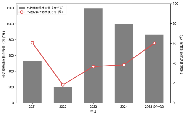 年度数据显示,尽管2022年该占比有所回落,但自2023年起,配套煤电在该六省总核准容量中的占比持续提高,印证了该战略已在跨区通道政策的支持下,已成为西北地区煤电布局的结构性支点。