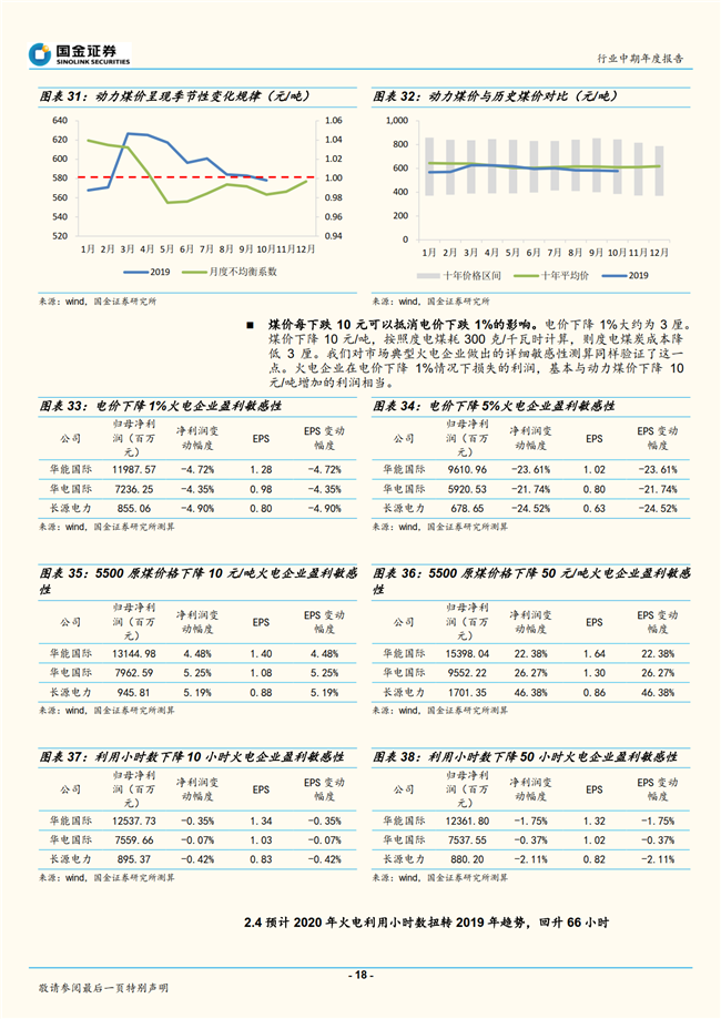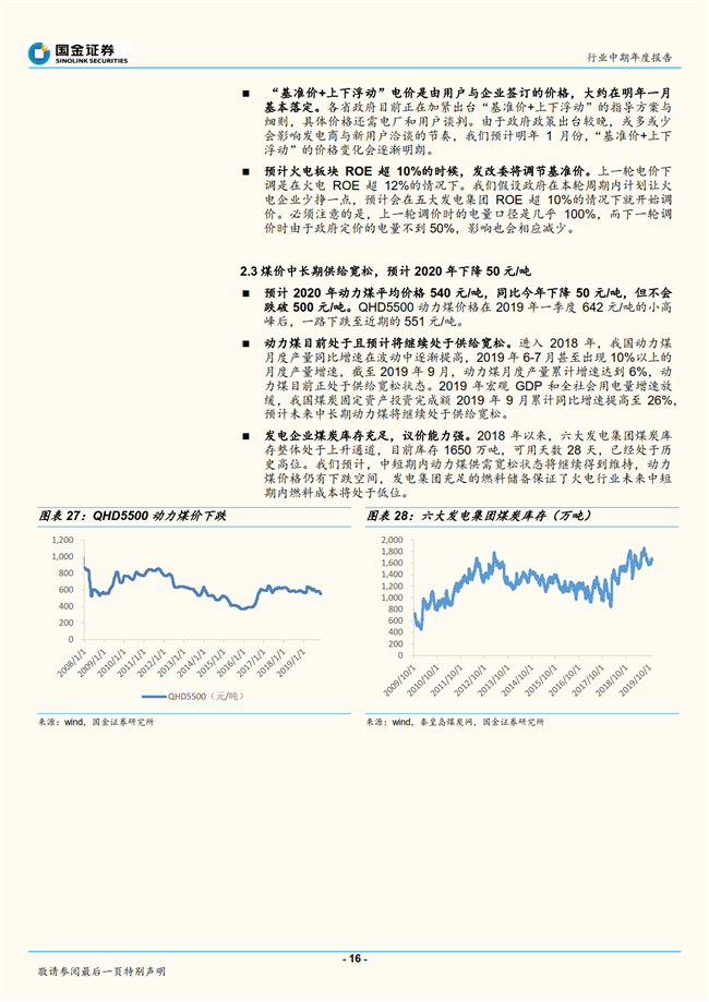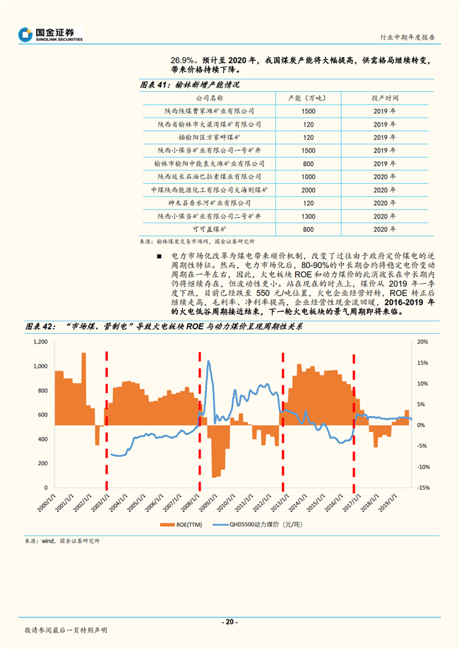 中长期看,火电板块盈利逐步向8%-10%的区间回归。煤价已于2019年进入四年一轮的下行周期,这带来火电企业的经营情况确定性改善;2015年以来由于电力市场化扩大带来的电价下降,即将因为经营性行业用电基本市场化而终止;现货市场还原电力的商品属性,火电企业也有望通过市场定价获得合理回报,改变历史上由于政府定价带来的周期性特征。2020年作为现货市场的开元年,叠加确定性的煤价下行,推动企业盈利向ROE8%-10%的合理盈利区间回归,开启火电行业公共事业属性回归的美好时代。
