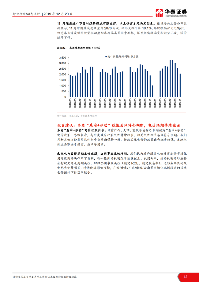电力行业月报:多省电价政策出台 关注明年双边量价