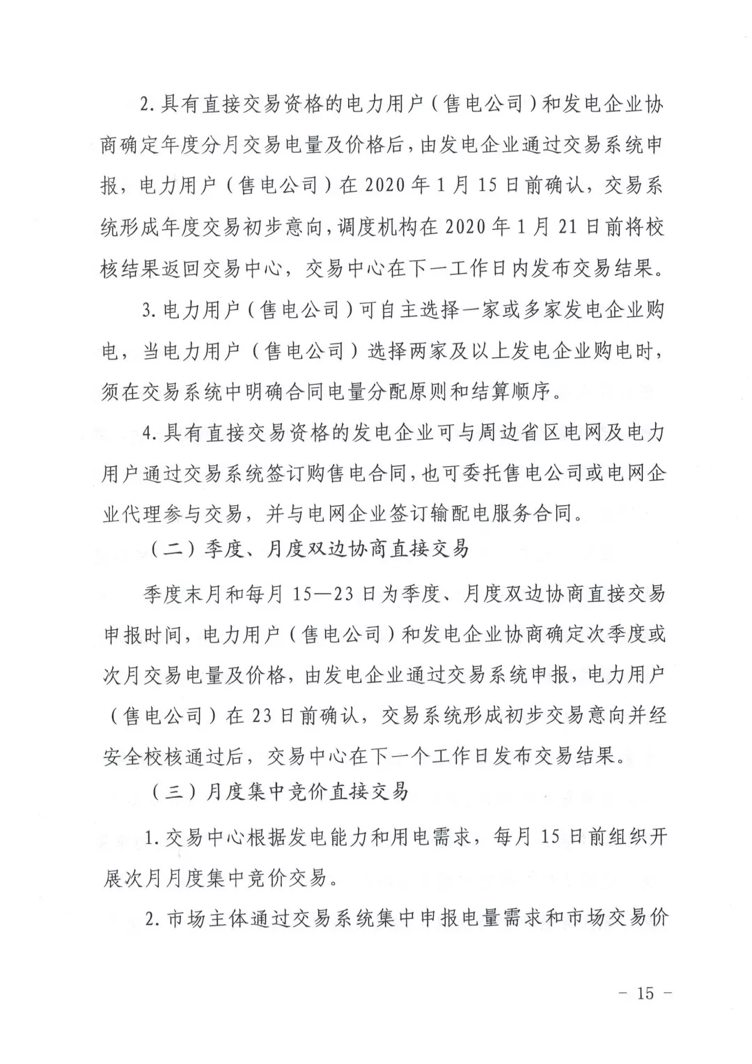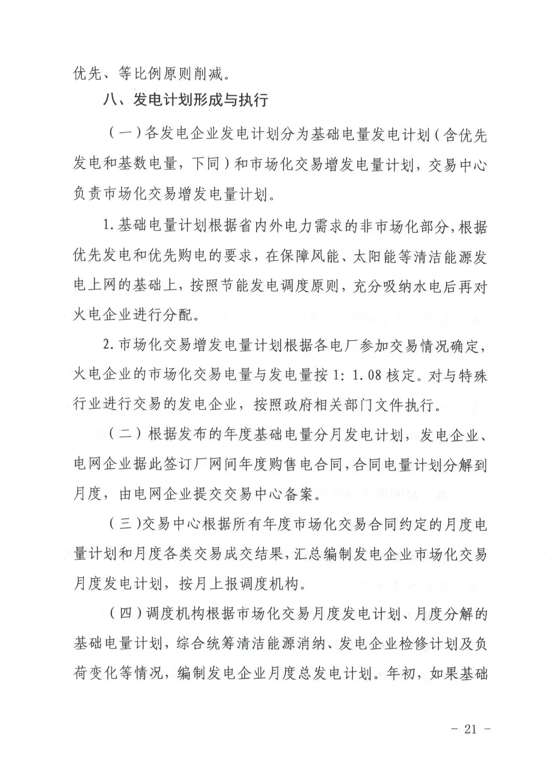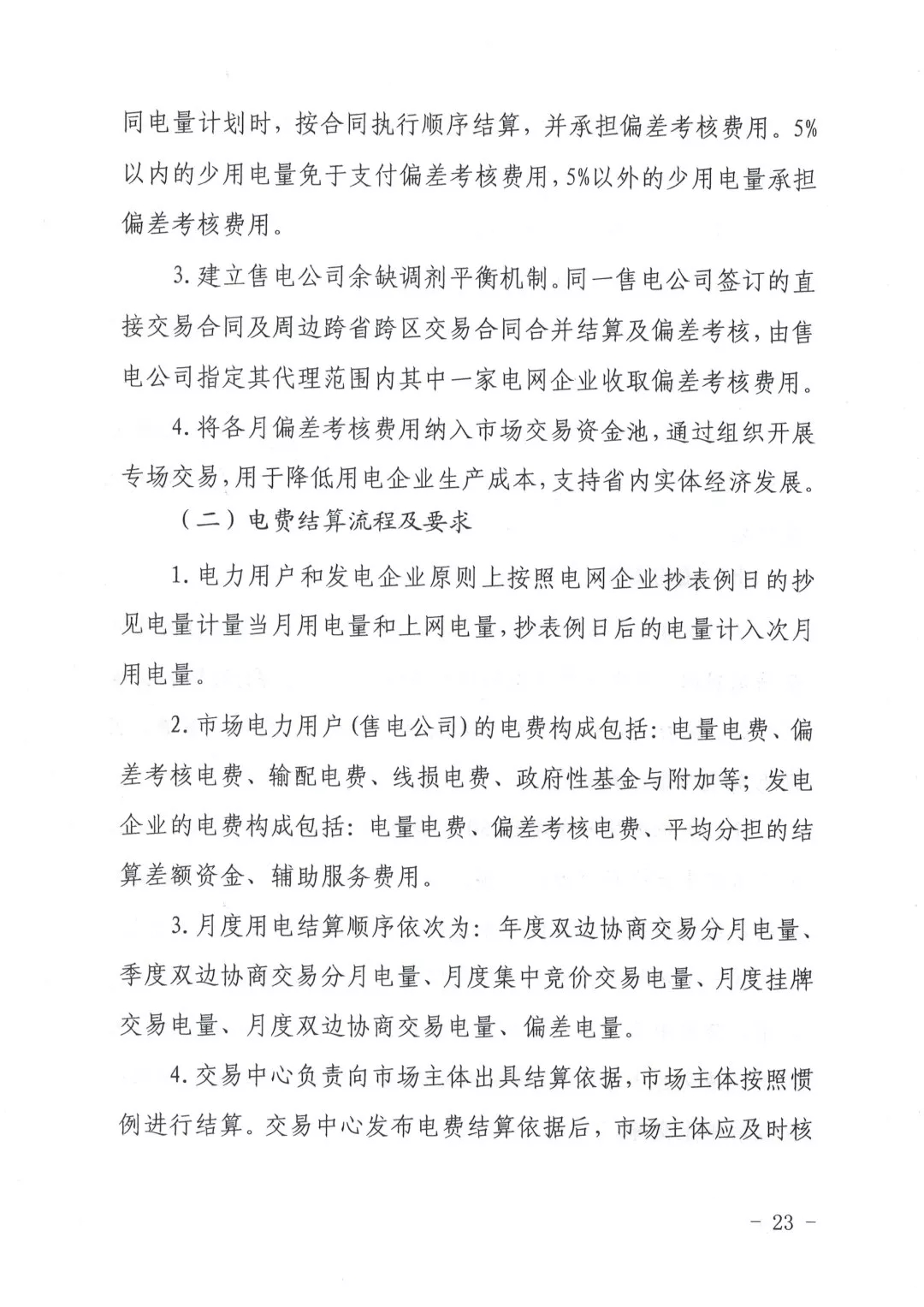 建立合同偏差电量结算机制,发电企业和电力用户(售电公司)的合同偏差分开按月清算、结账。当电力用户(售电公司)月度市场化交易电量小于合同计划电量时,按合同执行顺序结算并承担偏差考核费用。5%以内的少用电量免于支付偏差考核费用,5%以外的少用电量承担偏差考核费用。