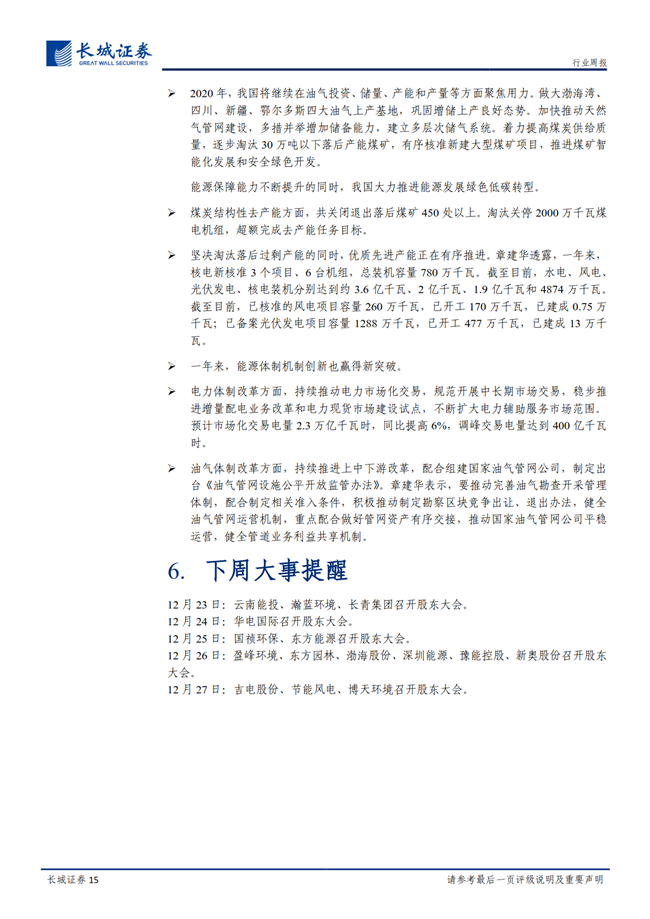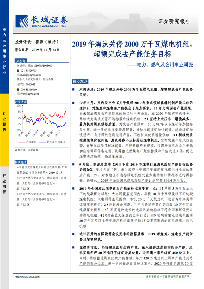 煤电方面,2019年淘汰关停2000万千瓦煤电机组,超额完成去产能任务目标。2020年要做好煤炭与煤电、煤制油、煤制气等相关产业协调发展;合理安排煤电建设投产规模和时序,着力提高电煤在煤炭消费中的占比,持续降低供电煤耗,稳妥发展煤制油气。