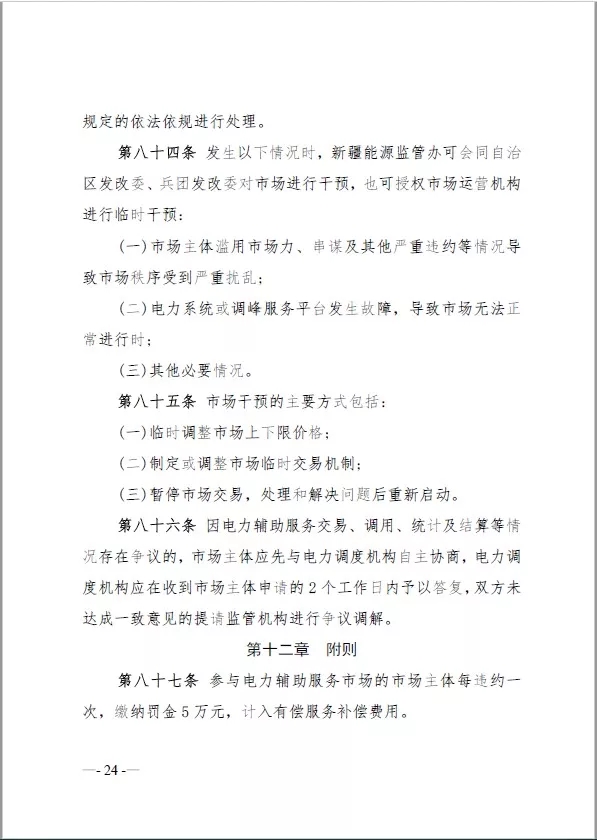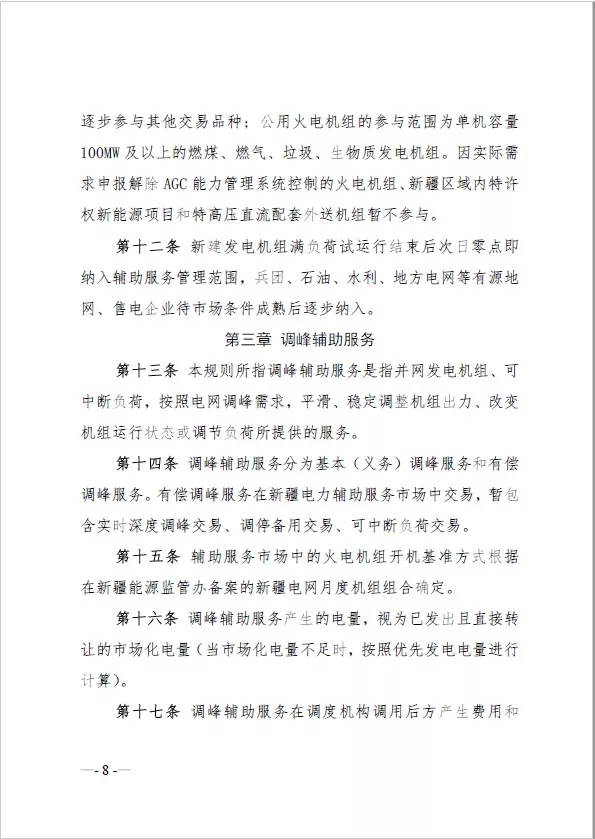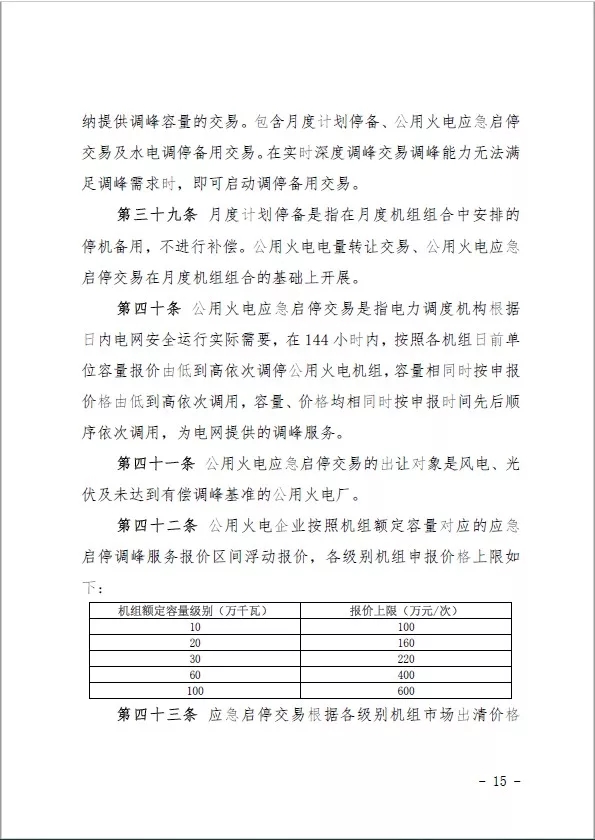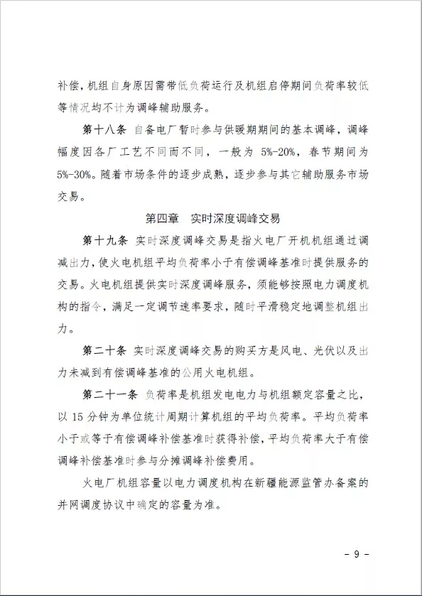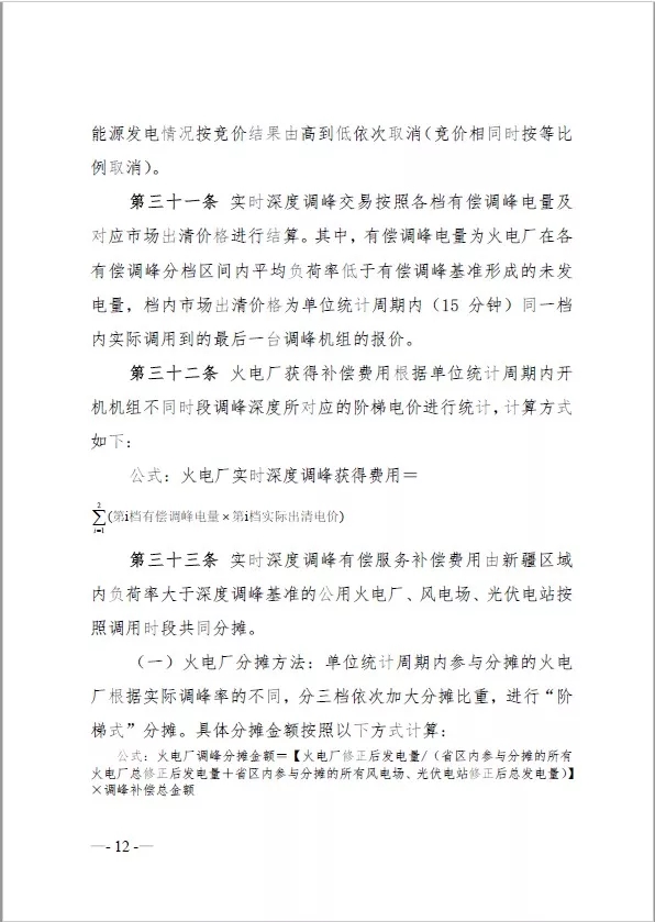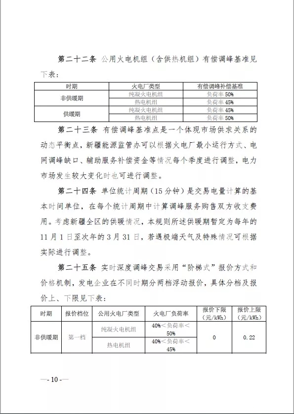 新疆电力辅助服务市场运营规则:实时深度调峰交易采用“阶梯式”报价方式和价格机制