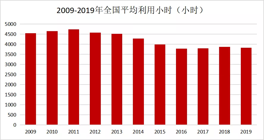 2019年,全国6000千瓦及以上电厂发电设备累计平均利用小时为3825小时。其中,水电3726小时、火电4293小时、核电7394小时、风电2082小时。