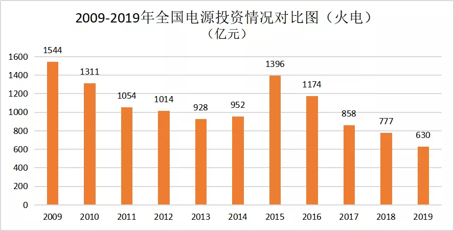 2009-2019年各类型电源投资情况进行对比,如下图: