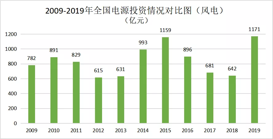 2009-2019年各类型电源投资情况进行对比,如下图: