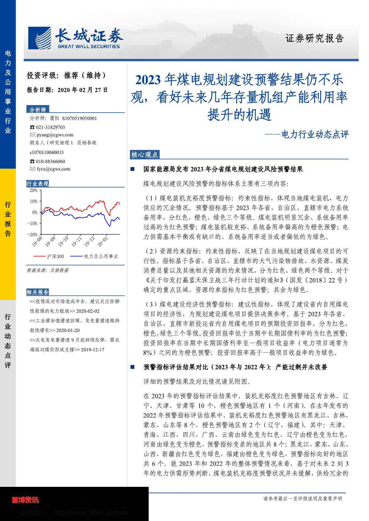 电力行业动态点评:2023年煤电规划建设预警结果仍不乐观,看好未来几年存量机组产能利用率提升的机遇。