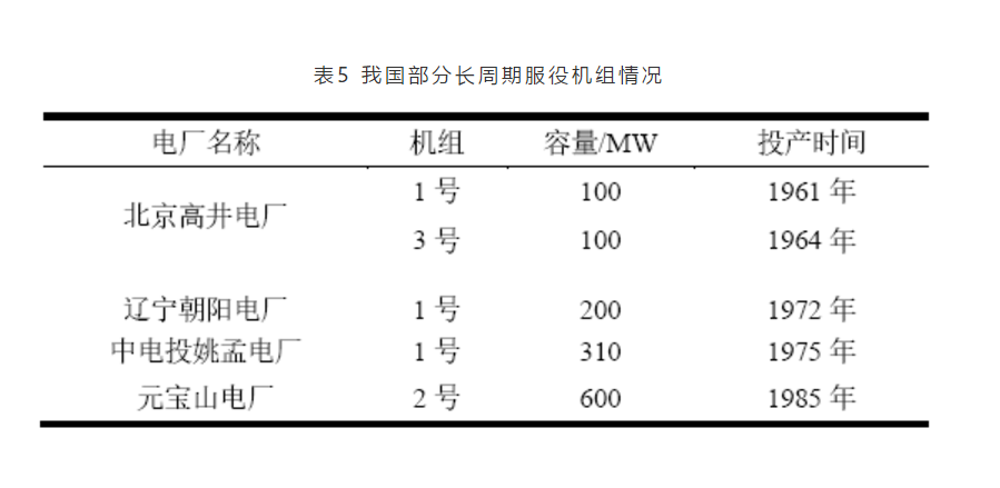 根据中国电力企业联合会可靠性管理中心统计数据,我国早期投产的煤电机组长周期服役情况见表5。根据查阅世界各国的国家能源署和电力公司网站的统计数据,部分国家长周期服役煤电机组情况见表6。