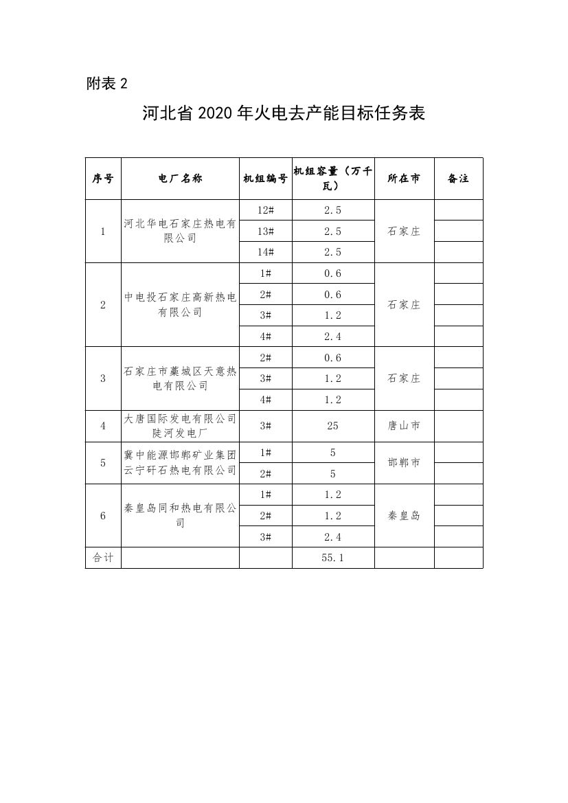 河北省发改委近日发布了关于火电去产能2019年完成情况及2020年目标任务的公示,详情如下: