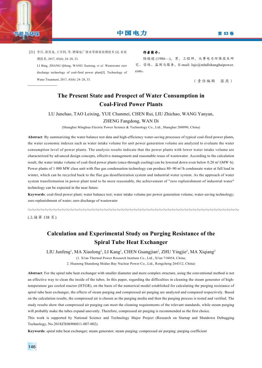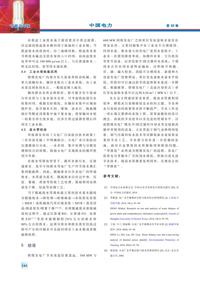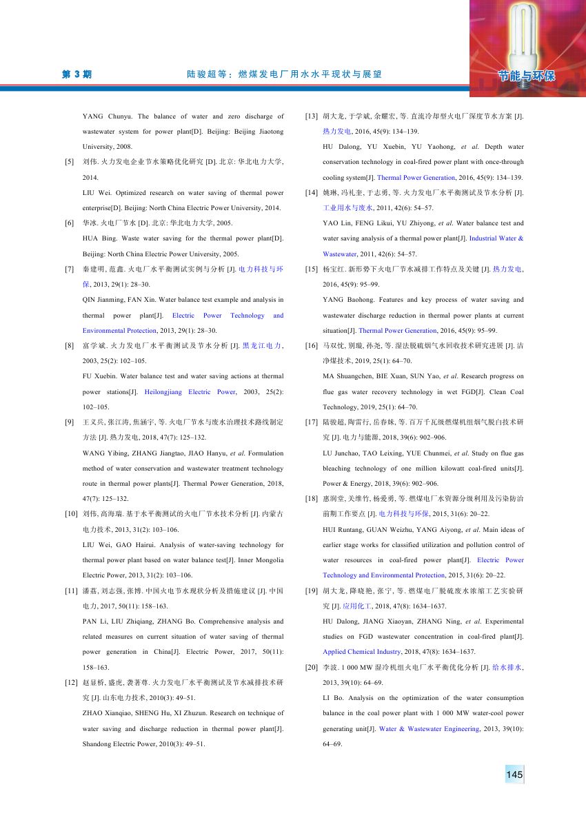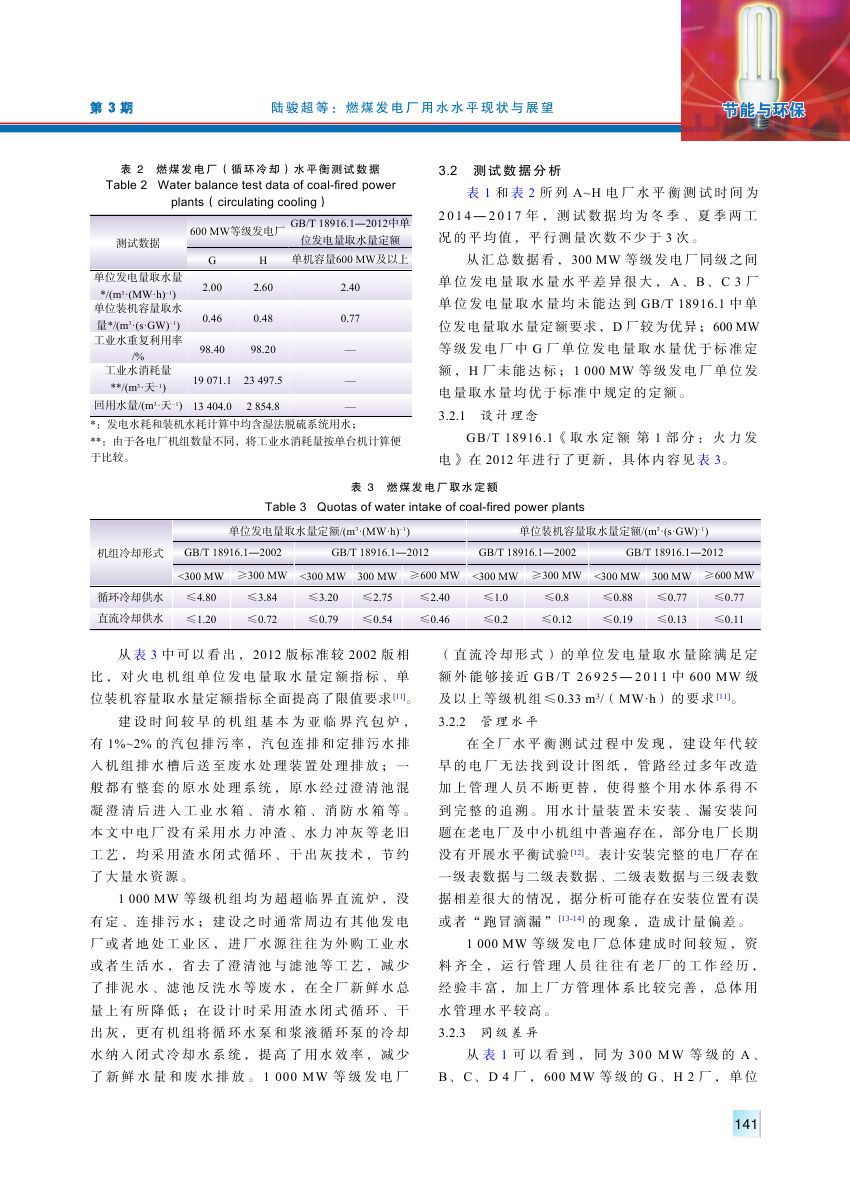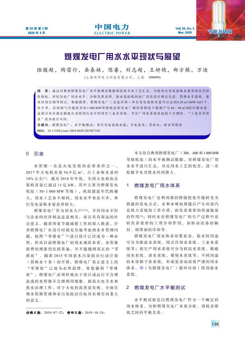 通过对典型燃煤发电厂水平衡测试数据和高效节水工艺汇总,分析单位发电量取水量等用水经济性指标,评估发电厂用水水平。分析结果表明,取水量较低的电厂具有设计理念先进、管理水平高效、废水回用合理等特点。根据推算,燃煤发电厂(直流冷却)单位发电量取水量可以达到0.20 m3/(MW·h)以下。在冬季,采用烟气冷凝技术的1 000 MW等级机组的发电厂满负荷情况下能够产生80~90 m3/h的冷凝水量,这部分水在满足脱硫自身使用后还可回用至工业水系统。当全厂用水系统改造趋于合理时,“工业水零补水”技术指日可待。