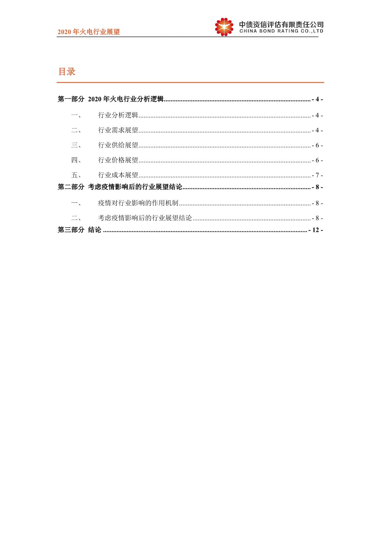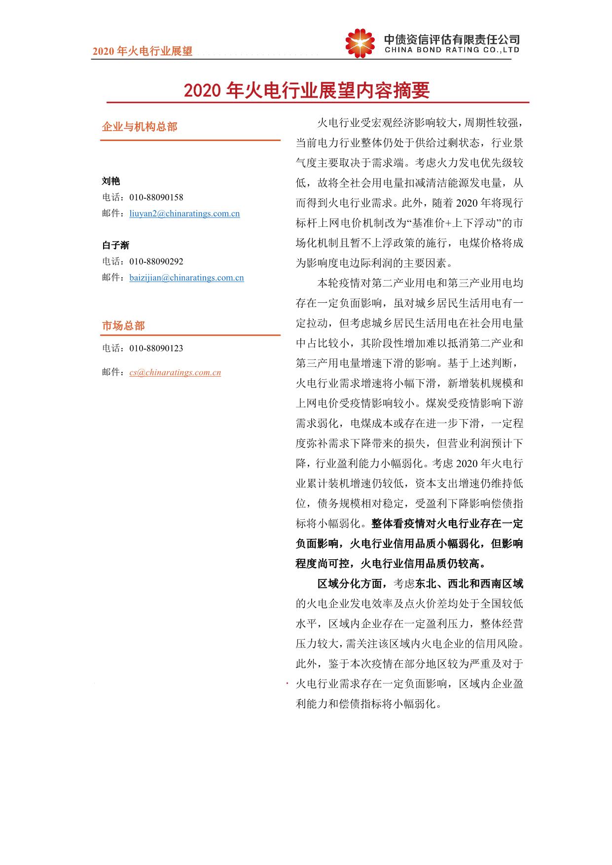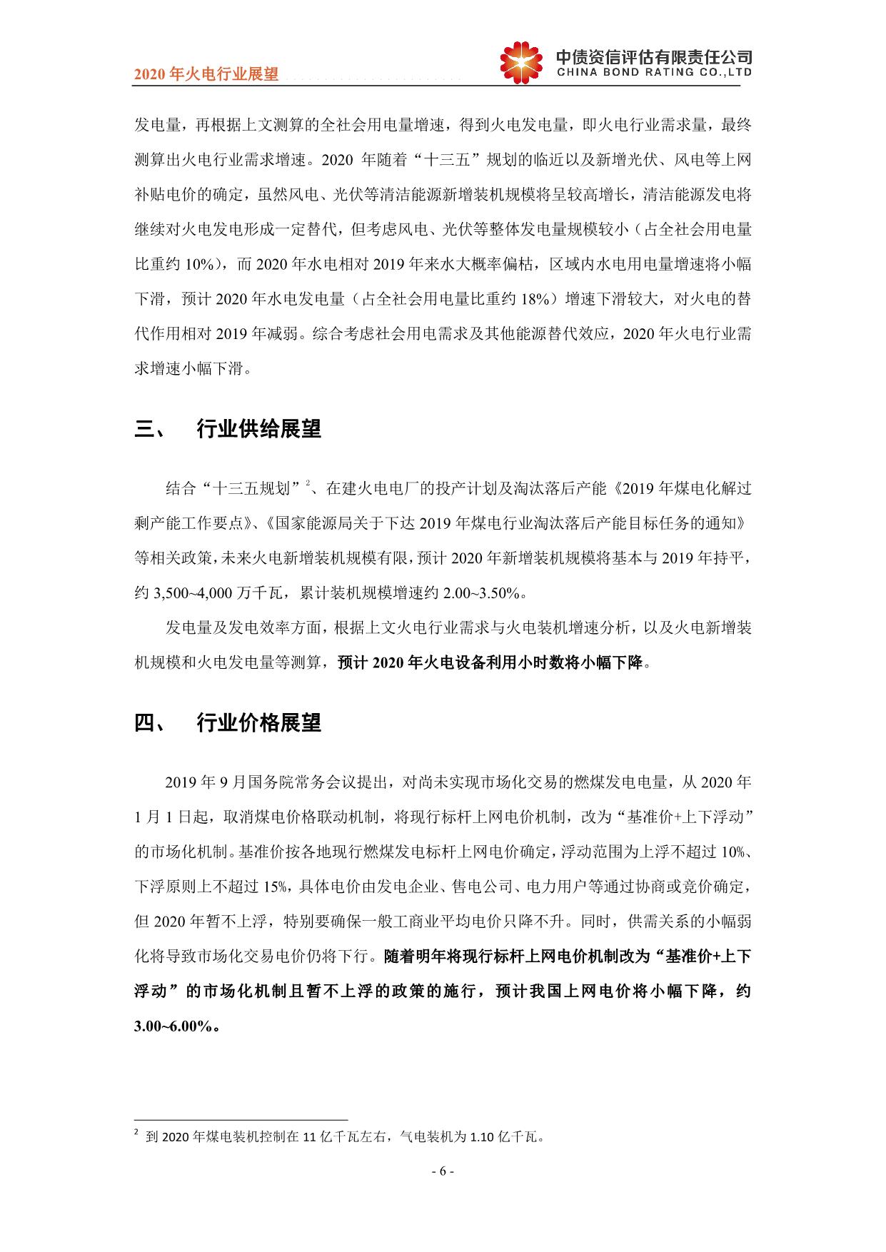 2020年中国火电行业展望