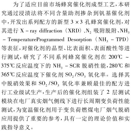 燃煤电厂宽温脱硝催化剂的开发与应用示范