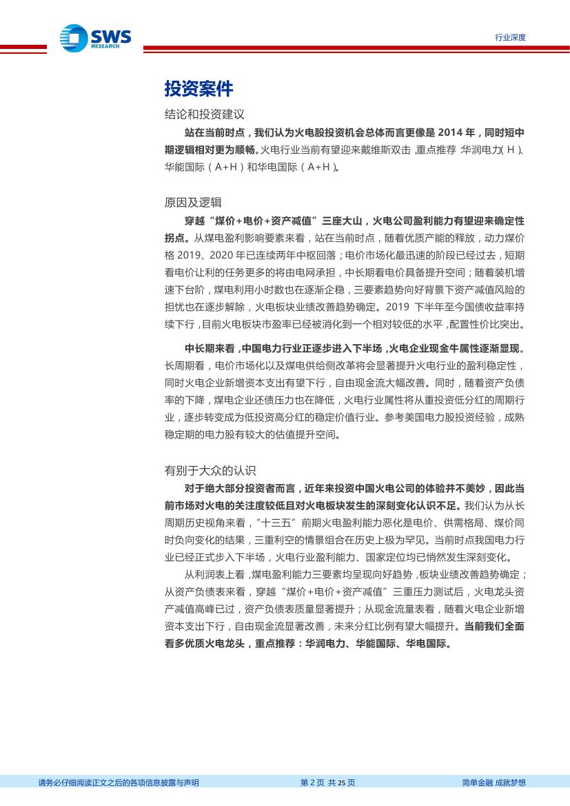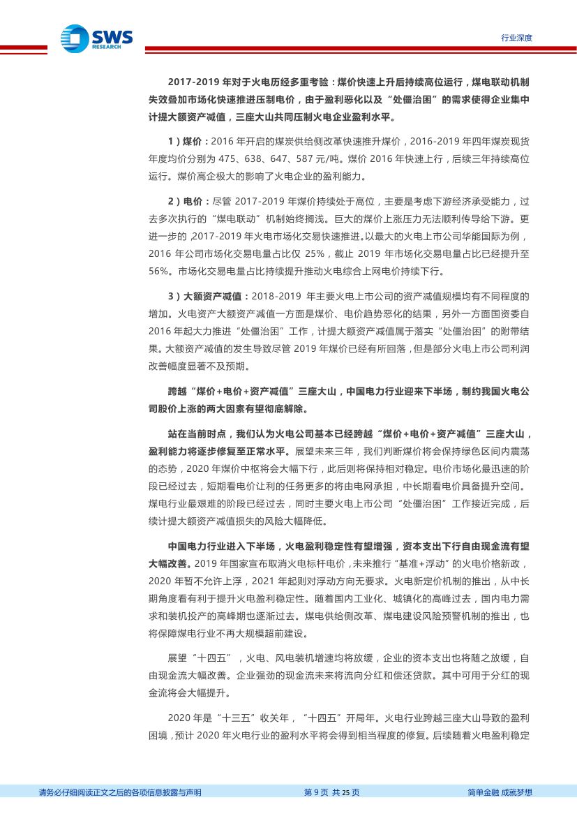 多重不利因素共振导致过去几年火电股表现不佳。对于绝大部分投资者而言,近年来投资中国火电公司的体验并不美妙。我们分析主要原因在于两点,其一,火电博弈带来的强周期性,煤价拐点难以把握,资产减值的发生进一步加大择时难度;其二,持续高强度的资本开支,再强劲的现金流也无法转化为扎实的股息回报。从盈利角度,2016-2019 年我国火电行业历经多重考验:煤价快速上升后持续高位运行,煤电联动机制失效叠加市场化快速推进压制电价,盈利恶化以及“处僵治困”的需求计提大额资产减值,多重不利因素呈现共振态势。