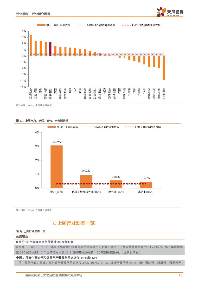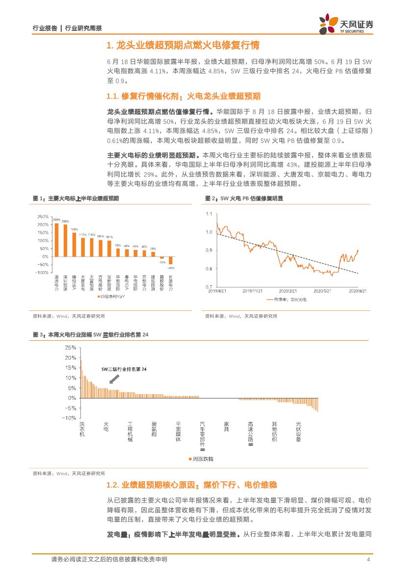 华能国际于8月18日披露中报,业绩大超预期,归母净利润同比高增50%,行业龙头的业绩超预期直接拉动火电板块大涨,6月19日SW火电指数上涨2.81%,本周涨幅达4.85%,SW三级行业中排名24。相比较大盘(上证综指)0.61%的周涨幅,本周火电板块超额收益明显,同时SW火电PB估值修复至0.9。本周火电行业主要标的陆续披露中报,具体来看,华电国际上半年归母净利润同比高增43%,建投能源上半年归母净利同比增长29%。此外,从业绩预告数据来看,深圳能源、大唐发电、京能电力、粤电力等主要火电标的业绩均有高增,上半年行业业绩整体超预期明显。