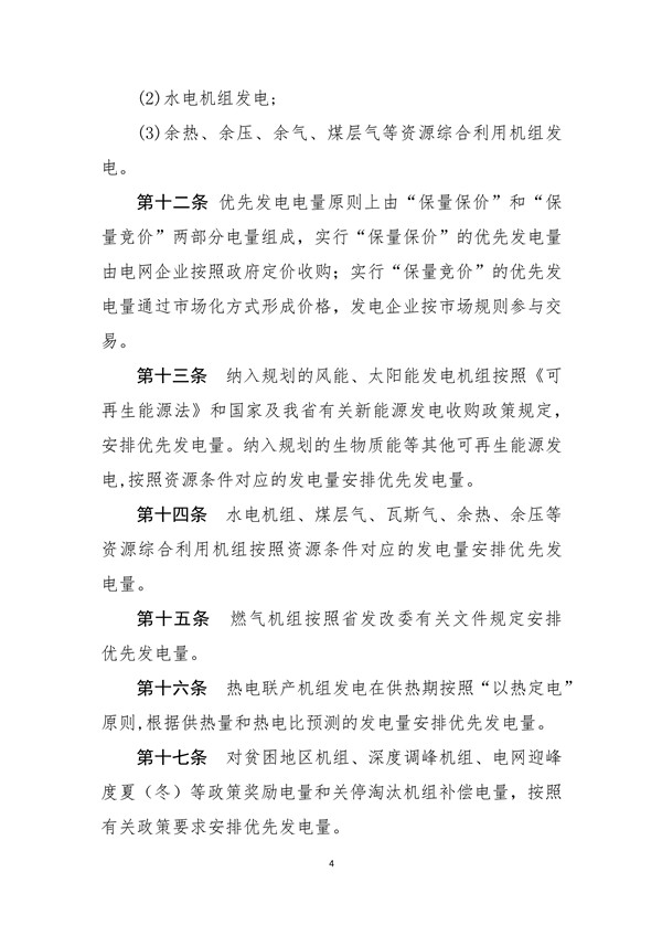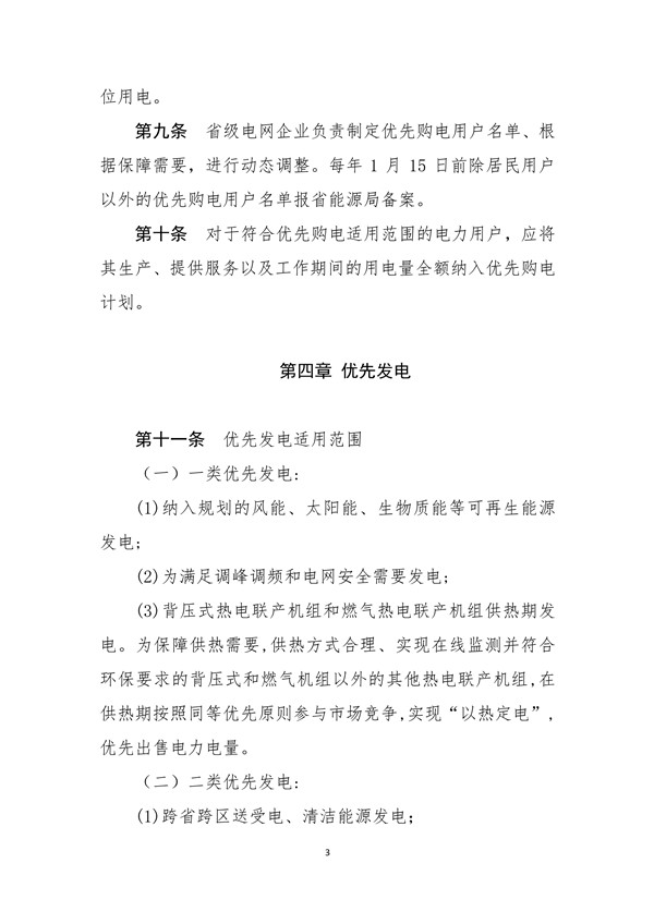 (3)背压式热电联产机组和燃气热电联产机组供热期发电。为保障供热需要,供热方式合理、实现在线监测并符合环保要求的背压式和燃气机组以外的其他热电联产机组,在供热期按照同等优先原则参与市场竞争,实现“以热定电”,优先出售电力电量。