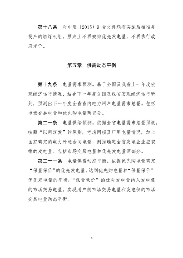 《办法》称, 对中发〔2015〕9 号文件颁布实施后核准并投产的燃煤机组,原则上不再安排优先发电量,不再执行政府定价。