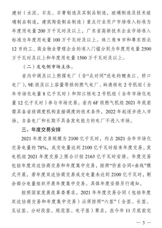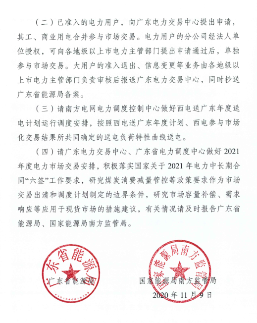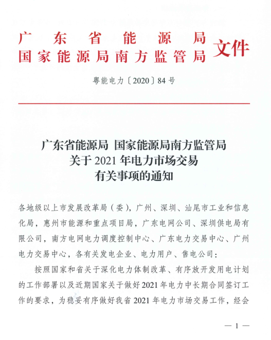 广东省能源局、南方能监局日前发布了《关于2021年电力市场交易有关事项的通知》。