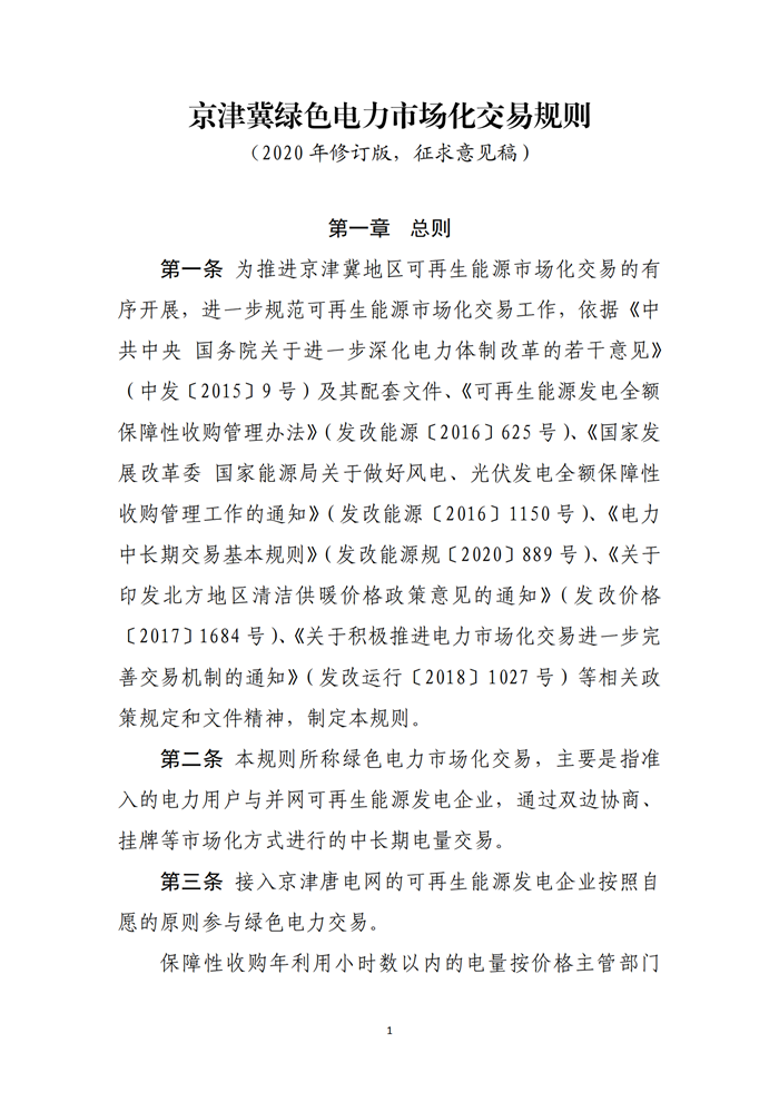 附件:1. 京津冀绿色电力市场化交易规则(征求意见稿).pdf