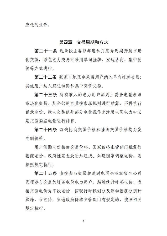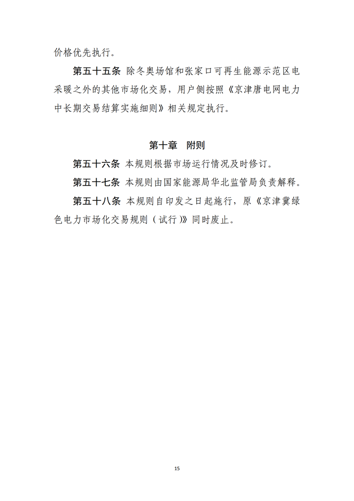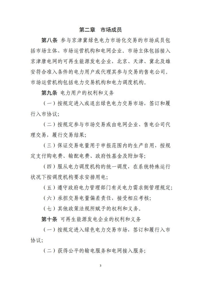 京津冀绿色电力市场化交易优先调度实施细则(征求意见稿)中指出,本规则是《京津唐电网电力中长期交易规则》的组成部分,试行成熟后,纳入《京津唐电网电力中长期交易规则》执行。