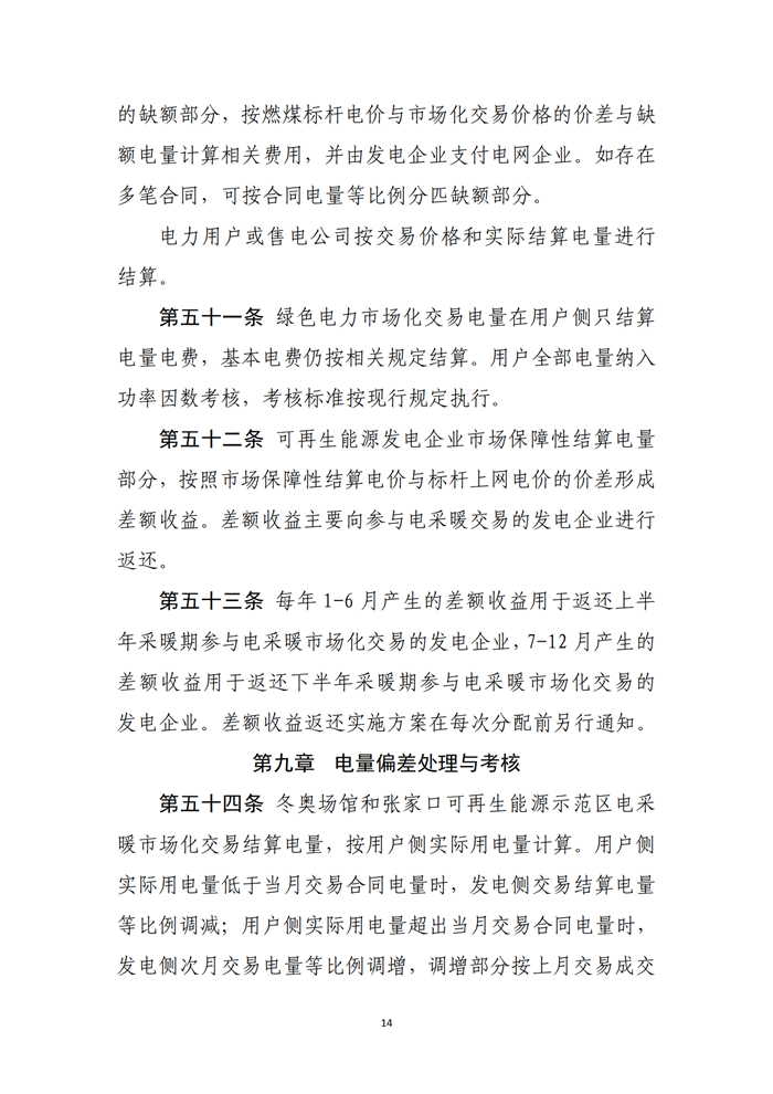 张家口地区电采暖用户纳入单向挂牌交易;其他用户纳入双边协商和集中竞价交易。