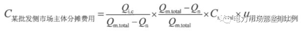 批发侧市场主体(含售电公司和批发大用户)按用电量比例承担用户侧市场化用户的费用: