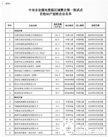 西北五省央企煤电,首批划转电厂已移交