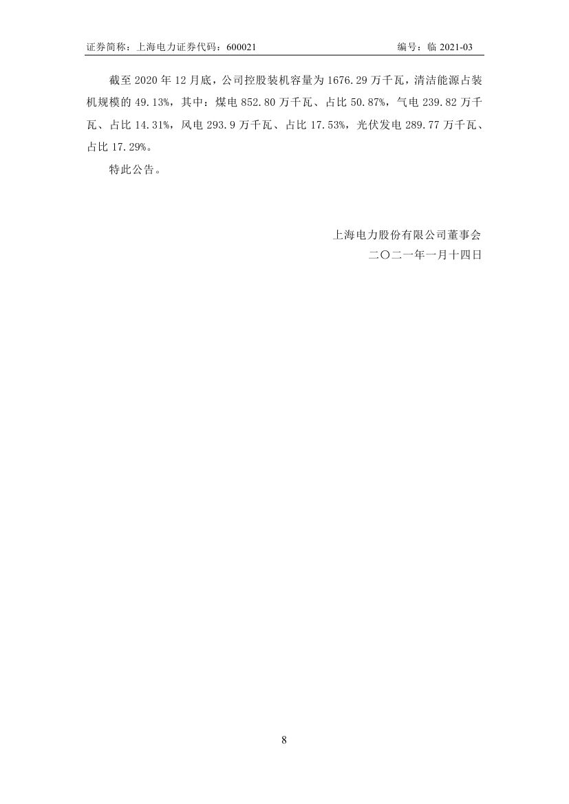 上海电力:2020年完成合并口径发电量491.27亿千瓦时