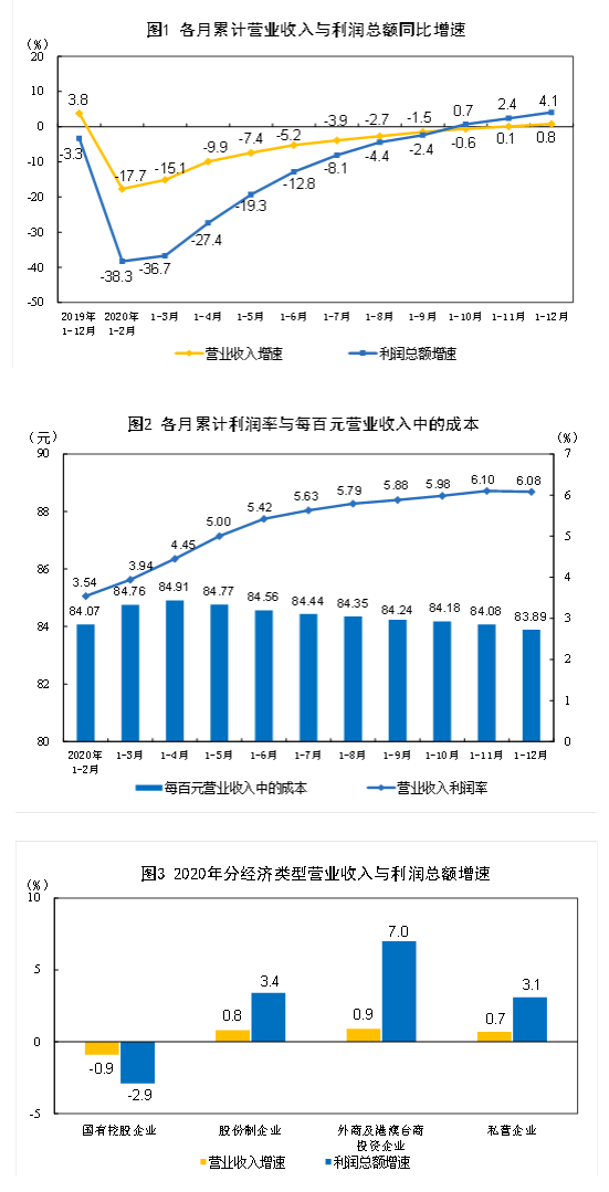 2020年12月份,规模以上工业企业实现利润总额7071.1亿元,同比增长20.1%,增速比11月份加快4.6个百分点。