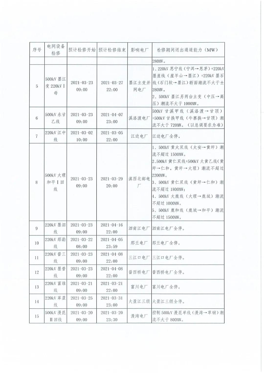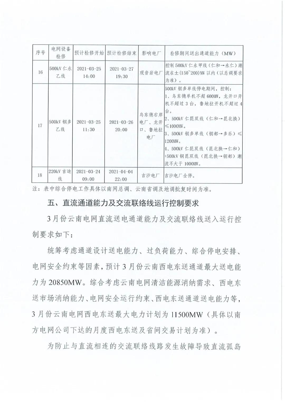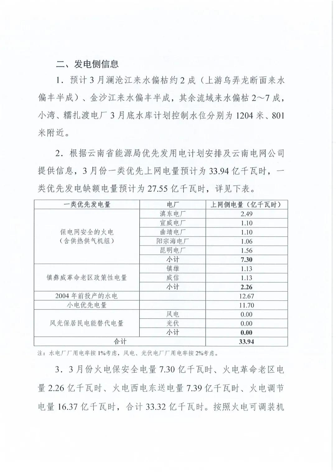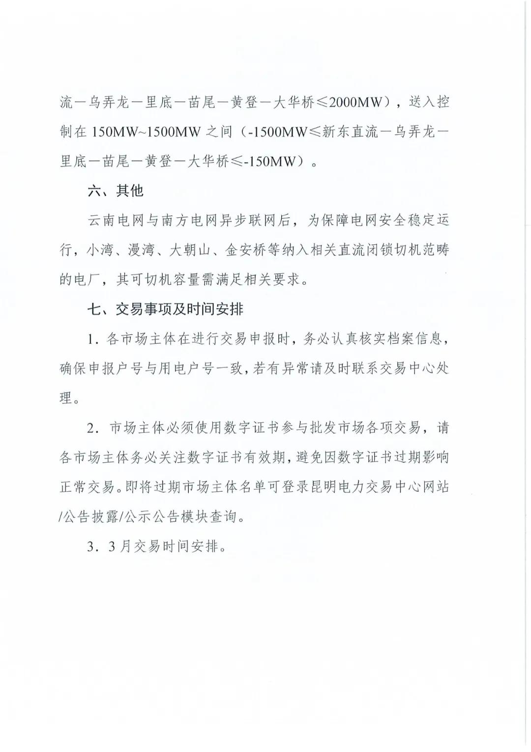 2021年3月云南电力市场化交易信息披露
