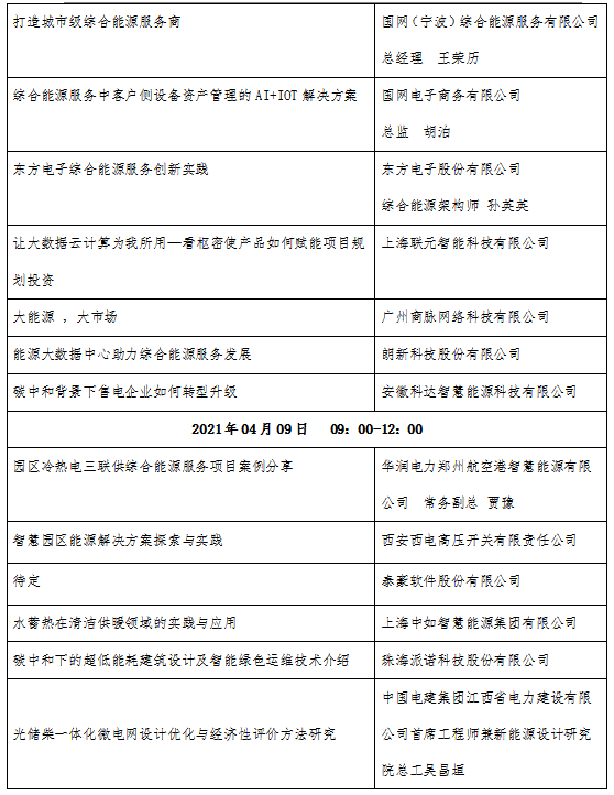 3.综合能源服务项目、储能项目、风电项目、光伏项目、氢能项目、增量配电项目、能效节能项目、多能互补项目、电动汽车及充电桩等项目对接活动;
