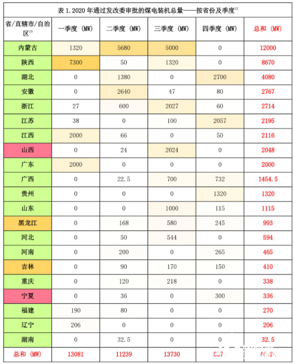 2020年新通过审批煤电总量同比增长231.6%,不利于建设低碳新型电力系统