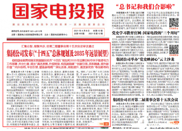 4月1日,《国家电力投资集团有限公司“十四五”总体规划及2035年远景展望》(以下简称《规划》)经集团公司第二届董事会第十五次会议审议通过,并在集团系统内发布。