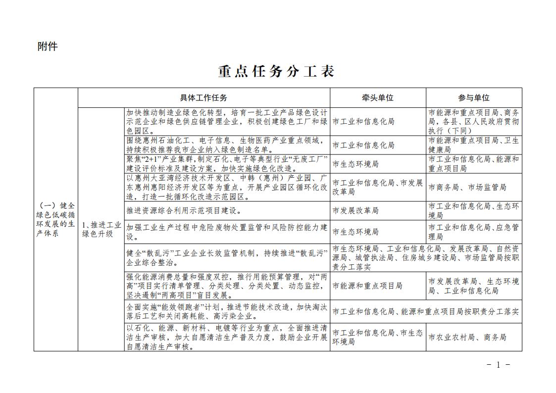 惠州市加快促进经济社会绿色低碳循环发展工作方案