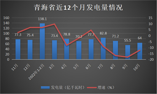 10月份,总发电量64亿千瓦时,同比减少12.2%;其中,火电发电量17.4亿千瓦时,同比增长38.9%;水力发电量23.9亿千瓦时,同比减少45.9%;风力发电量7.5亿千瓦时,同比增长29.1%;太阳能发电量15.1亿千瓦时,同比增长47.4%。