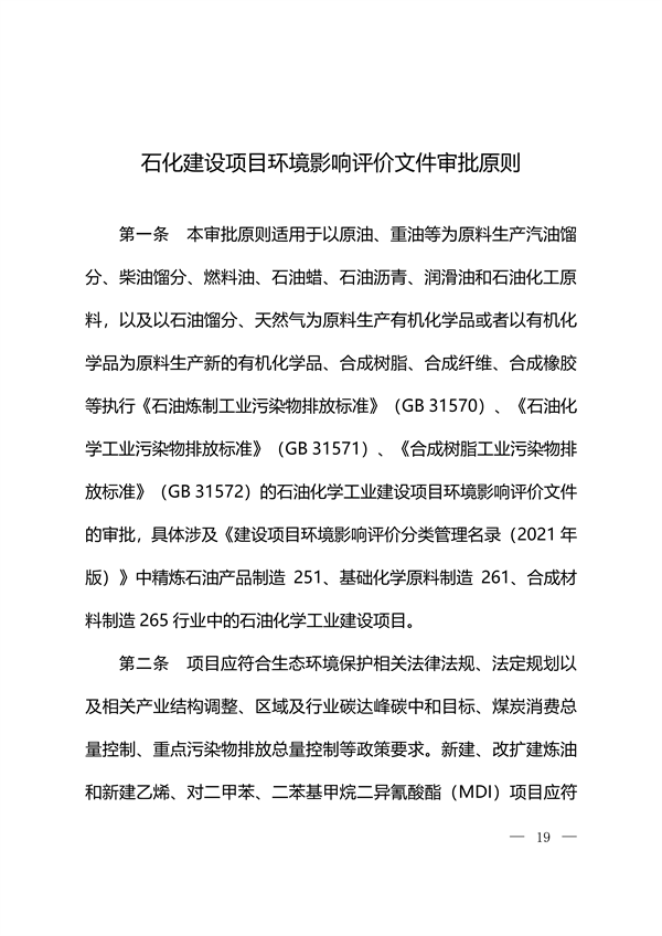 生态环境部印发钢铁/焦化、现代煤化工、石化、火电四个行业建设项目环境影响评价文件审批原则