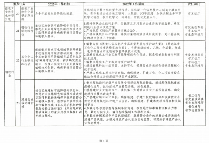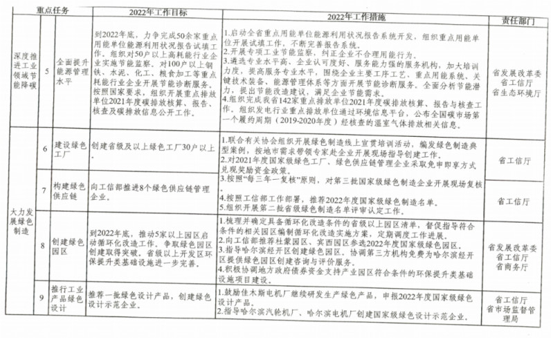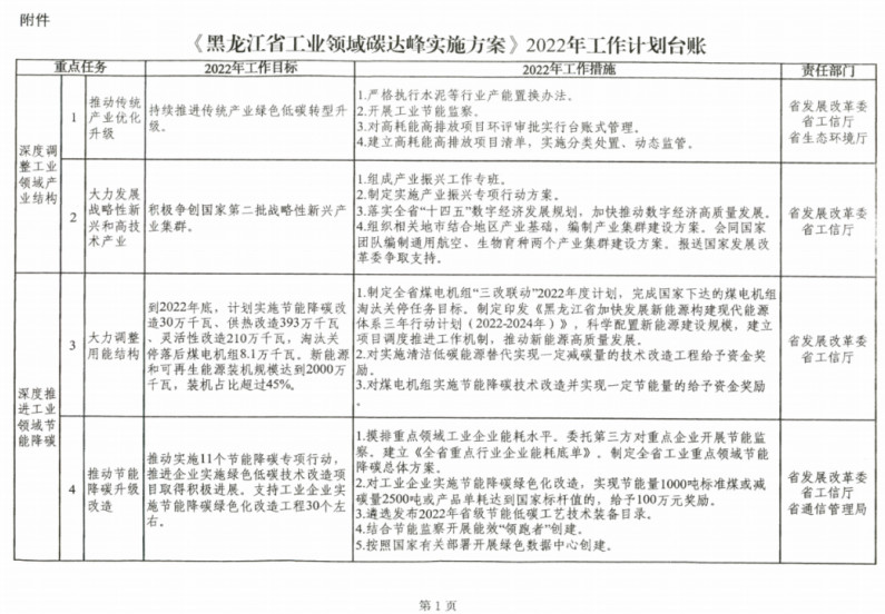 附件:《黑龙江省工业领域碳达峰实施方案》2022年工作计划台账