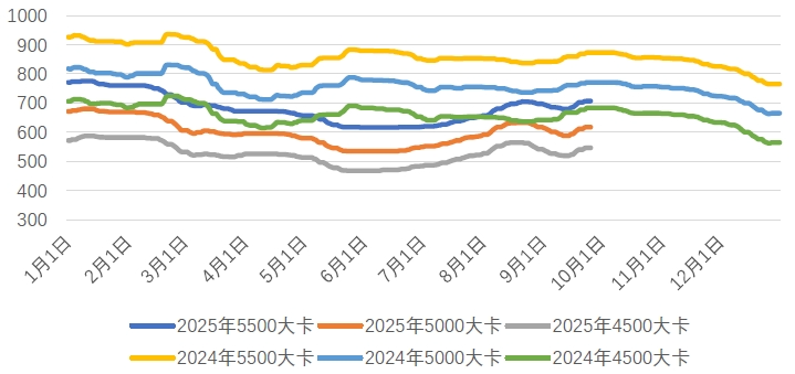 港口市场方面,本周北方港口动力煤市场呈现“库存稳定,报价区间收窄”的特征。港口库存总体稳定,小幅波动。临近假期,随着电厂补库需求接近尾声,下游对高价接受度下降,市场情绪降温,价格逐步止涨企稳。但非电行业需求稳定,叠加内蒙古超产整改落地、大秦线秋检补库需求释放、港口库存结构性矛盾凸显等,短期内煤价得到支撑。进口煤市场则表现为“外盘坚挺,内需平淡”。印尼降雨导致供应偏紧、报价坚挺,俄罗斯现货资源有限,澳大利亚煤价因日韩需求增加及运力受阻等因素影响得到支撑。然而,国内需求平淡,成交以印尼市场主流煤种为主,高卡煤则依旧维持零星刚需补库。