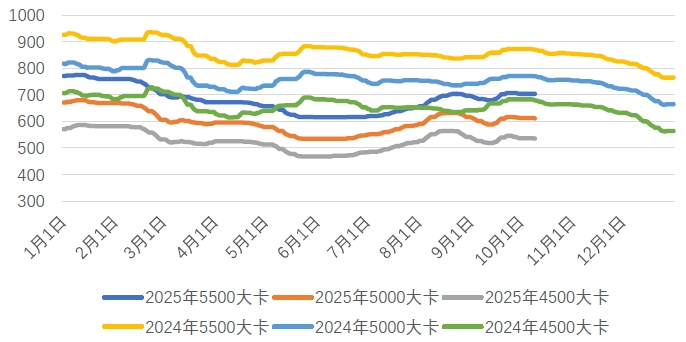 国内煤炭主产地方面,本周主产地煤炭市场整体呈现“供应恢复但需求疲软”的特征,国庆期间,内蒙古、陕西等地煤矿陆续复产,供应量逐步恢复。产地煤价整体延续弱势,多地煤矿密集下调报价5-30元/吨不等。节前终端阶段性补库已结束,电力企业采购节奏放缓,市场情绪偏谨慎。化工煤需求相对坚挺,而建材和冶金用煤需求延续疲软,以刚需采购为主。