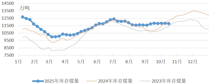 根据中电联电力行业燃料统计,截至10月16日,纳入统计的发电集团燃煤电厂本月累计发电量同比增长9.9%,本年累计发电量同比下降3.7%。燃煤电厂耗煤量本月累计同比增长6.9%,本年累计同比下降4.5%。燃煤电厂煤炭库存低于去年同期441万吨,库存可用天数低于上年同期0.8天。