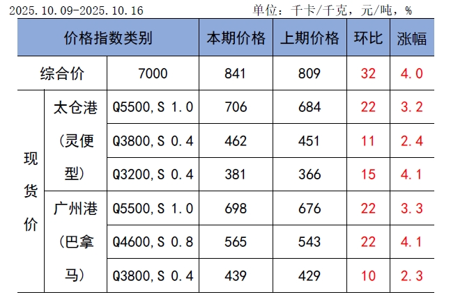 CECI沿海指数5500千卡/千克、5000千卡/千克现货成交价较上期上涨24元/吨、21元/吨。从样本情况看,5500千卡/千克规格品现货成交价样本价格区间分别为725-730元/吨。从样本热值分布看,5500千卡/千克、5000千卡/千克、4500千卡/千克样本在总量中占比分别为12.4%、55.2%、32.4%。