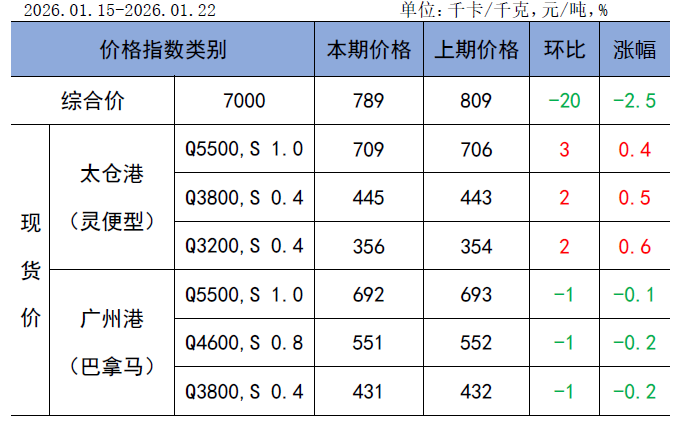 港口市场方面,本周呈现“价格重心下移,库存小幅去化,市场成交僵持”格局。受发运倒挂及周初大风封航影响,港口调入量维持在相对低位,环渤海港口库存整体被动下降。电力及非电行业均仅维持刚需采购。综合来看,尽管寒潮天气拉升日耗,但在终端库存整体充足、尤其是长协煤供应稳定的背景下,其对于市场实际采购需求的拉动作用有限,难以扭转市场整体偏弱的运行基调。