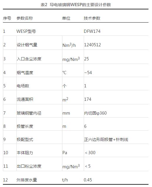 根据技术协议,本项目的WESP入口烟气参数及性能要求见表1。