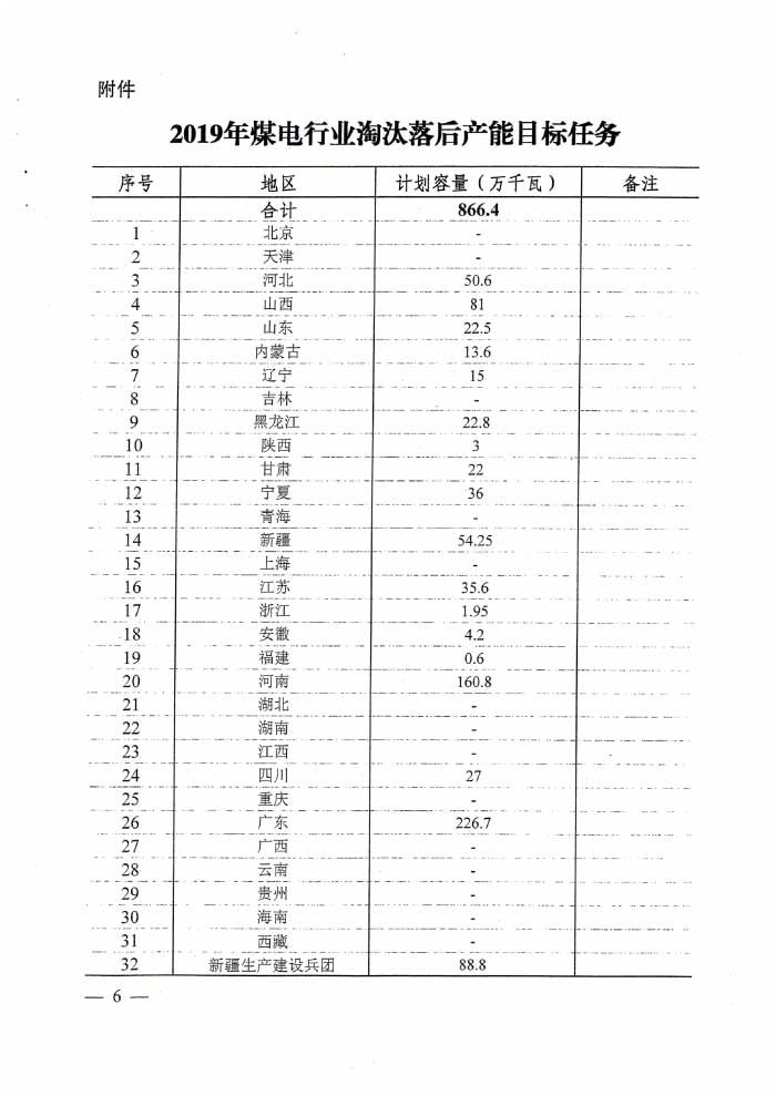 9月29日,国家能源局官方网站发布了《国家能源局关于下达2019年煤电行业淘汰落后产能目标任务的通知》。在通知中明确:2019年煤电行业淘汰落后产能目标任务为866.4万千瓦。