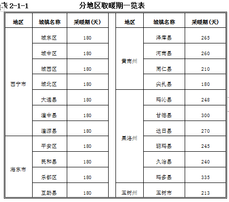 青海属高原大陆性气候,各气象要素在时空分布差异性较大,年平均气温-5.9~8.7℃,区域分布呈南、北低,中部高。青南高原和北部的祁连山区年平均气温-3~5℃,东部河湟谷地年平均气温3~9℃,柴达木盆地年平均气温2~5℃。海北、黄南、玉树、果洛零度以下天数分别为160、157、202、181天,最冷月平均气温分别为-12.6℃、-12.9℃、-15.2℃、-12.5℃。气候寒冷,自然条件恶劣,采暖期长,根据青海省气候资料中心编制的《青海省地面气候资料三十年整编(1981-2010)》;西宁市、海东市取暖期为6个月,藏区六州大多为7~8个月,曲麻莱县、治多县、甘德县、玛多县等地长达10个月以上。